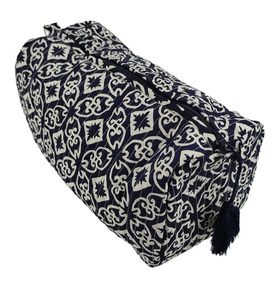 Entdecken Sie die perfekte Kombination aus Eleganz und Funktionalität mit der KADAL Handgefertigten Toilettentasche (Large, 30x20 cm). Diese geräumige Toilettentasche ist aus hochwertiger GOTS-zertifizierter Bio-Baumwolle gefertigt und mit einem stilvollen Handblockdruck verziert. Sie ist ideal für Reisen oder den täglichen Gebrauch und bietet ausreichend Platz für alle wichtigen Kosmetik- und Pflegeprodukte. Dank des wasserdichten Innenfutters bleiben Ihre Utensilien stets geschützt und organisiert.