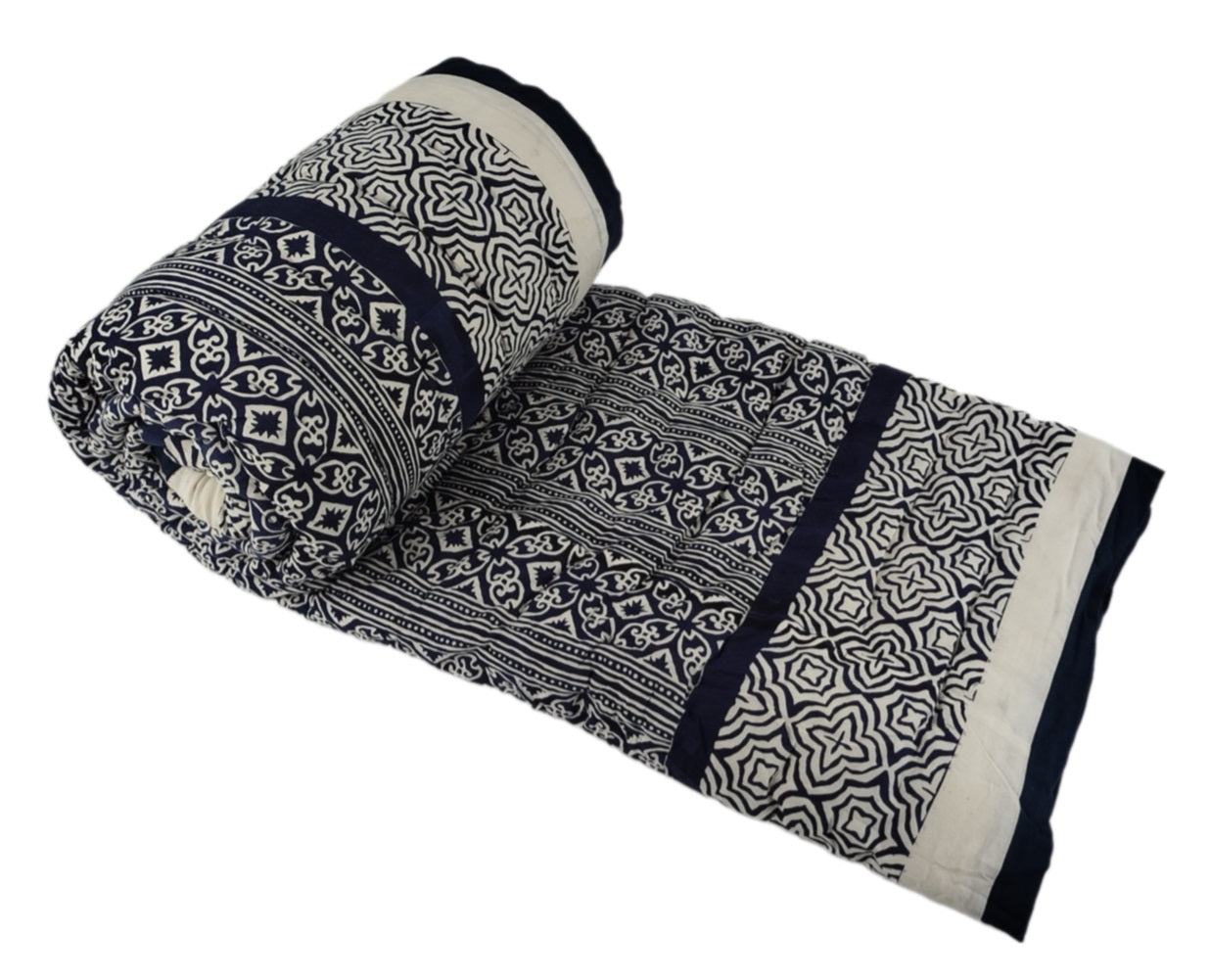 Bringen Sie stilvolle Eleganz und Komfort in Ihr Zuhause mit dem KADAL Handgefertigten Quilt (160x220 cm). Dieser luxuriöse Quilt besteht aus hochwertiger GOTS-zertifizierter Bio-Baumwolle und verfügt über ein doppelseitiges Design mit kunstvollen Handblockdruckmustern. Ideal für die kühleren Monate, bietet dieser Quilt nicht nur Wärme, sondern auch einen Hauch von traditionellem indischen Handwerk.