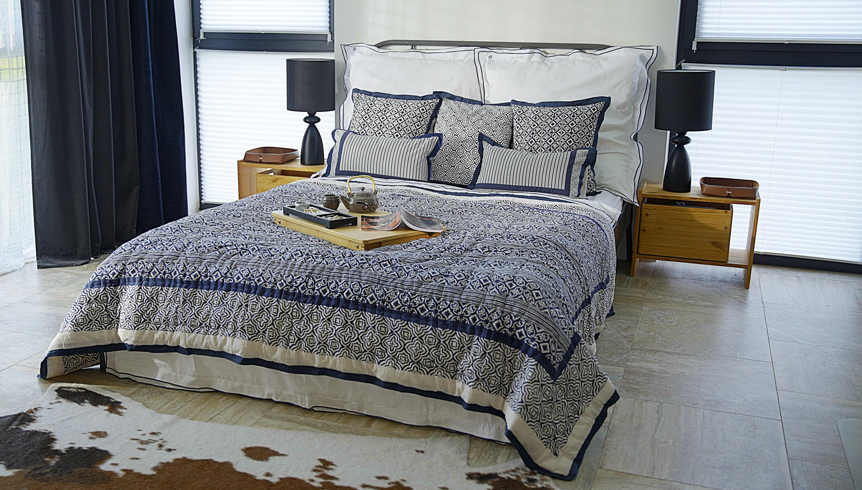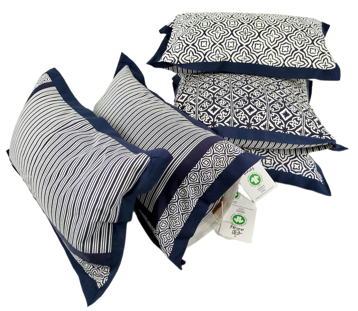Entdecken Sie das außergewöhnliche L-Shape Kissen Set aus GOTS-zertifizierter Bio-Baumwolle, erhältlich in den Kollektionen VANAM und KADAL. Dieses einzigartige 2er-Set, bestehend aus zwei Kissen mit den Maßen 30x50 cm, ist so konzipiert, dass es zusammen ein elegantes L-Shape-Muster bildet, wenn sie nebeneinander platziert werden. Die Kissenhüllen sind handgefertigt und mit kunstvollen Mustern im traditionellen Handblockdruckverfahren verziert, die jedem Raum einen Hauch von Eleganz und Kultur verleihen.