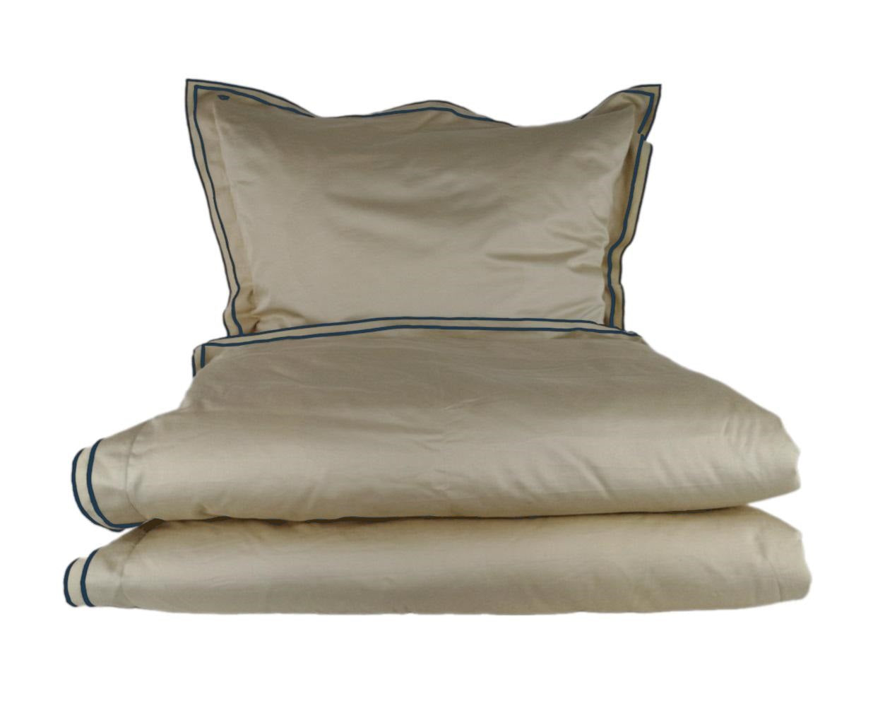 MEGAM Bettbezug-Set mit dunkelblauer Stickerei auf beigem Stoff (140x200 cm)
