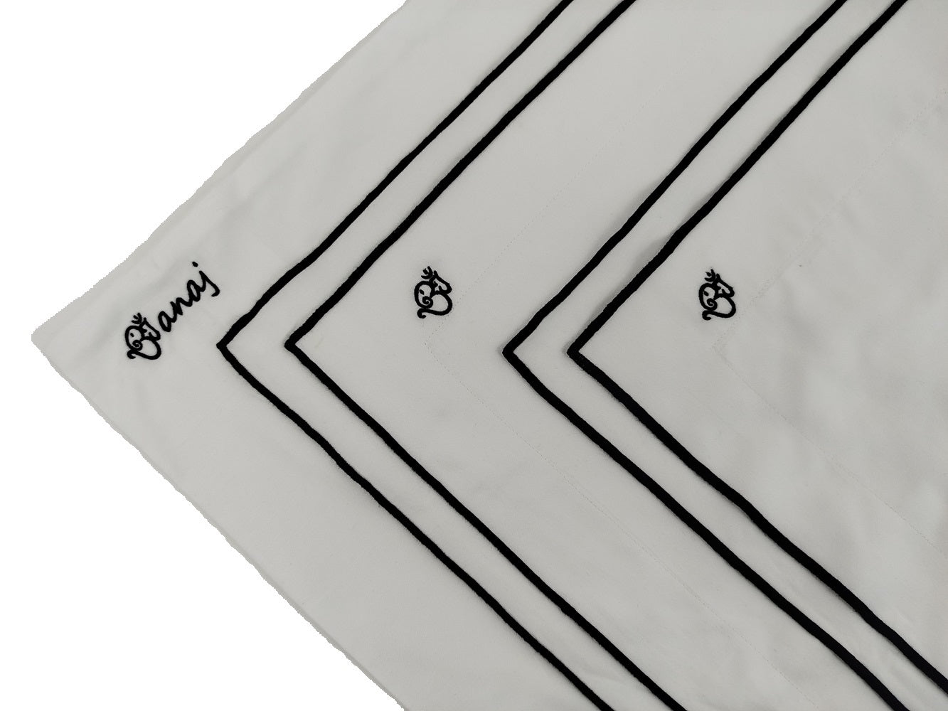 Erleben Sie Luxus und Nachhaltigkeit in Perfektion mit dem MEGAM Bettbezug-Set. Dieses Set, verziert mit kunstvoller schwarzer Stickerei auf hochwertigem weißem 400TC Satin-Baumwollstoff, bringt zeitlose Eleganz in Ihr Schlafzimmer. Als GOTS-zertifiziertes Produkt steht dieses Set nicht nur für außergewöhnlichen Komfort, sondern auch für höchste ökologische und soziale Standards. Das ikonische anaj Logo, ebenfalls kunstvoll eingestickt, verleiht dem Design eine exklusive Note und macht dieses Set zu einem besonderen Highlight.