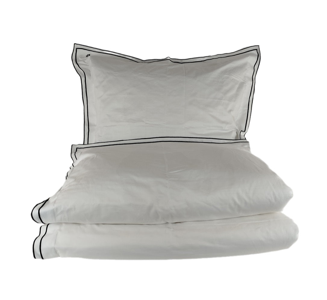 MEGAM Bettbezug-Set mit schwarzer Stickerei auf weißem Stoff (140x200 cm)